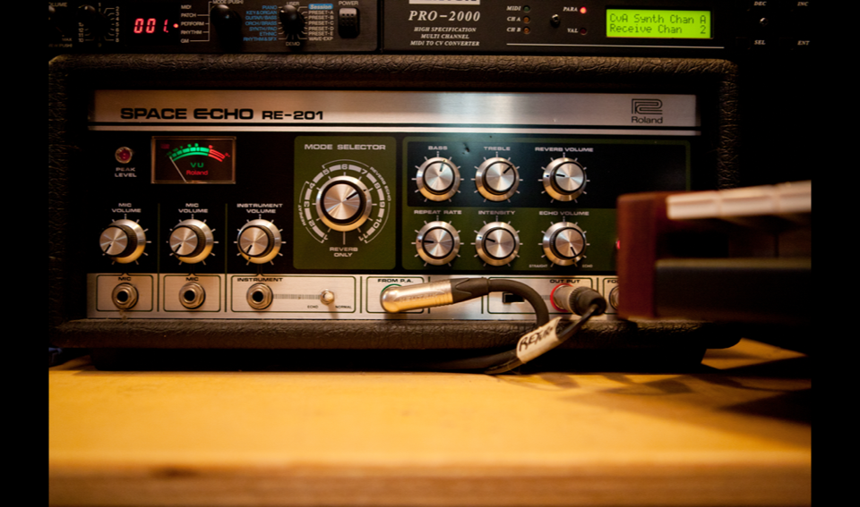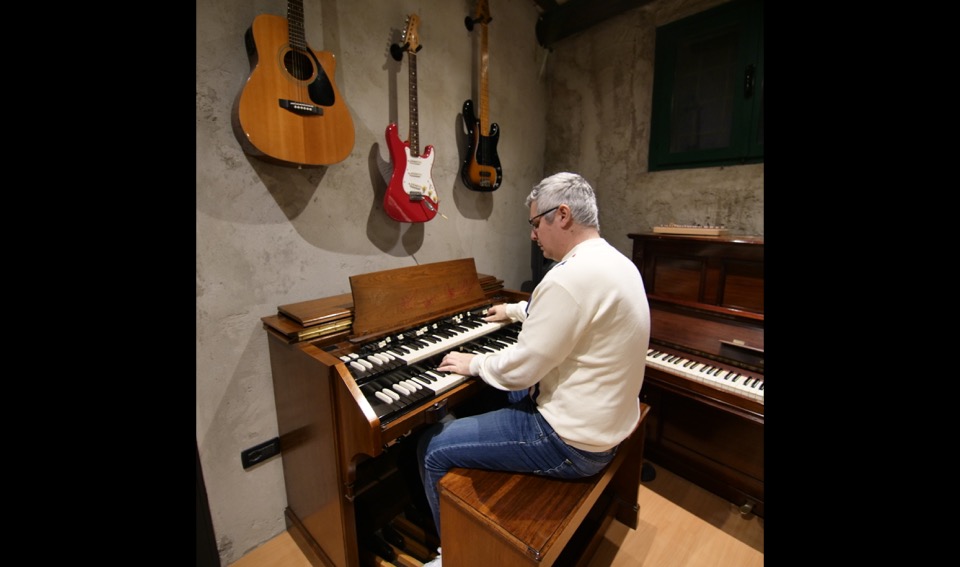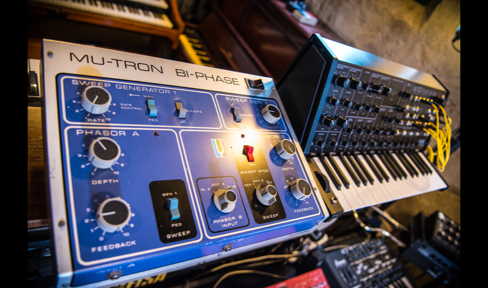 Dispone di vari strumenti moderni e vintage, acustici ed elettronici, delle migliori marche.